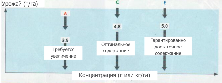 Содержание доступных для растений микроэлементов в пахотном слое почвы имеет решающее значение. При этом на растворимость и динамику усвоения влияют прежде всего различные свойства почвы, такие как её тип и уровень pH, а также интенсивность и глубина обработки. Так, в почвах с повышенным уровнем рН бор и марганец большей частью связываются. Считается, что чем выше качество пахотного слоя, тем лучше снабжение растения микроэлементами. Следует стремиться к тому, чтобы содержание микроэлементов в почве соответствовало классу С (Рис. 2). Рапсу и свекле требуется особенно много бора и марганца. Для того, чтобы максимально использовать генетически обусловленную высокую урожайность рапса, его необходимо также обеспечить цинком и медью.